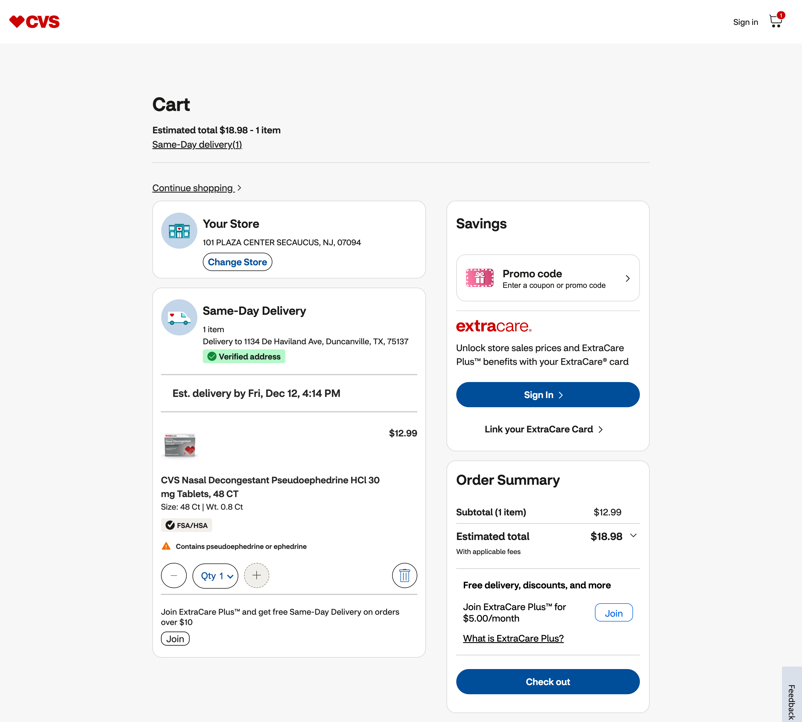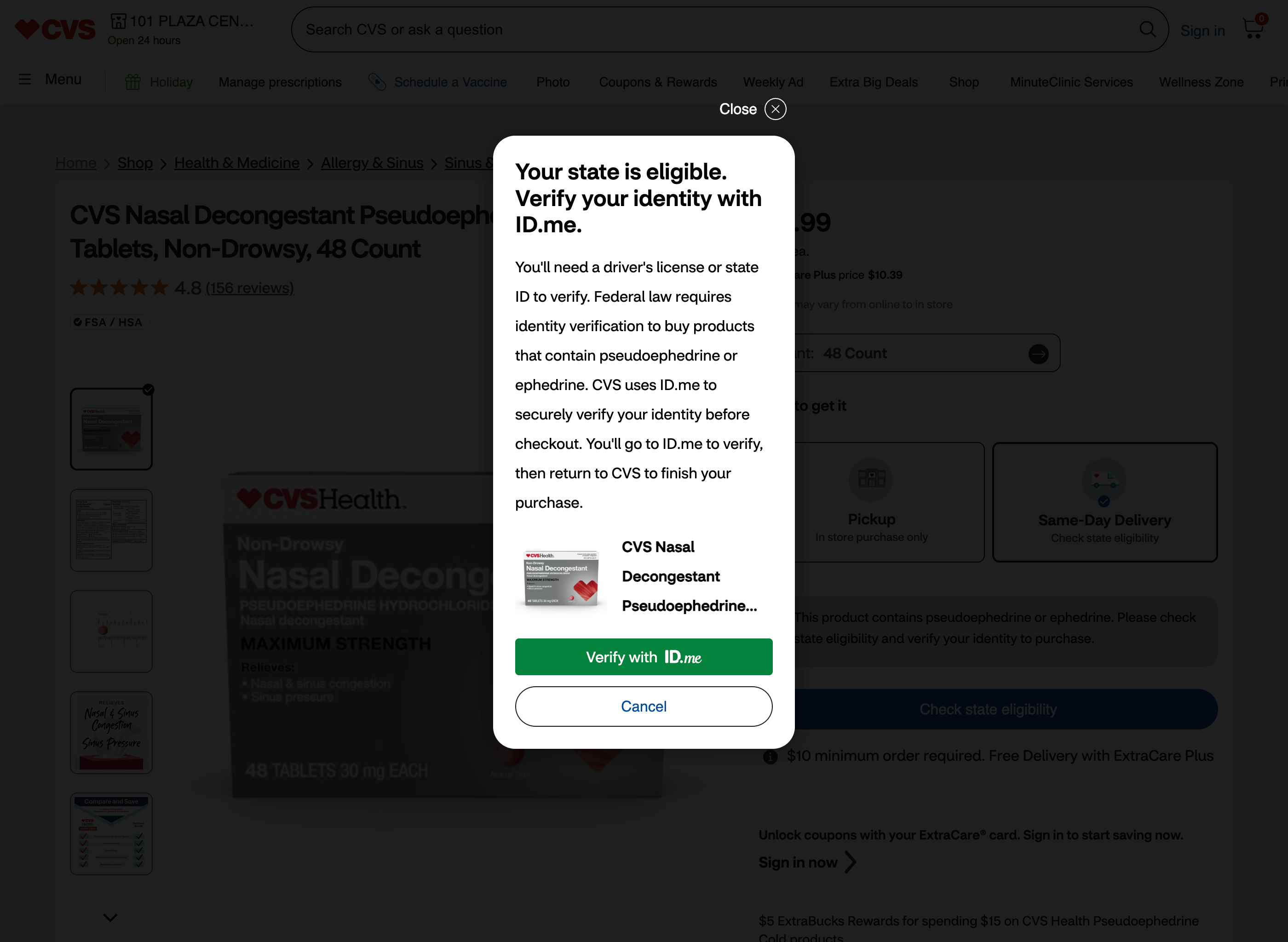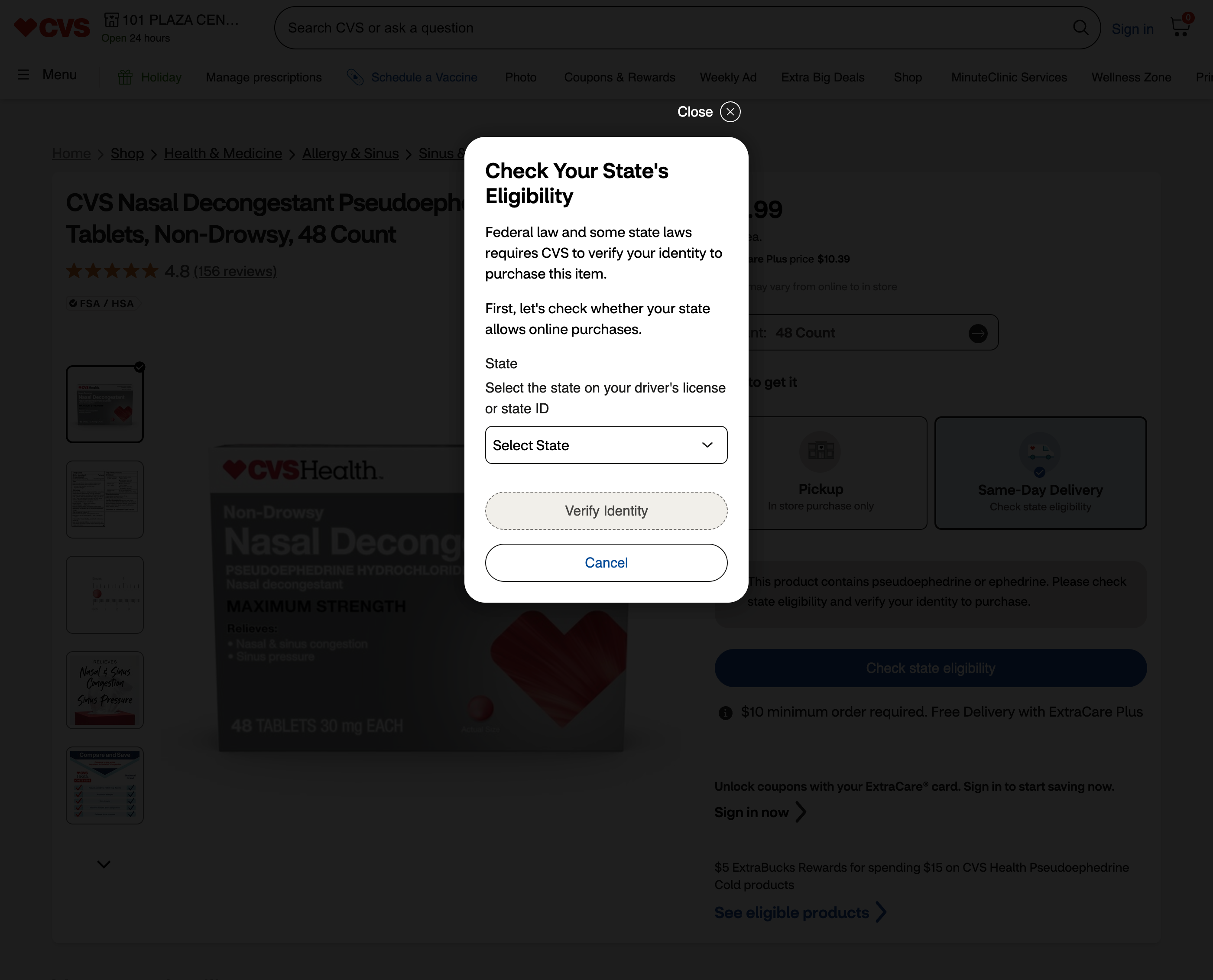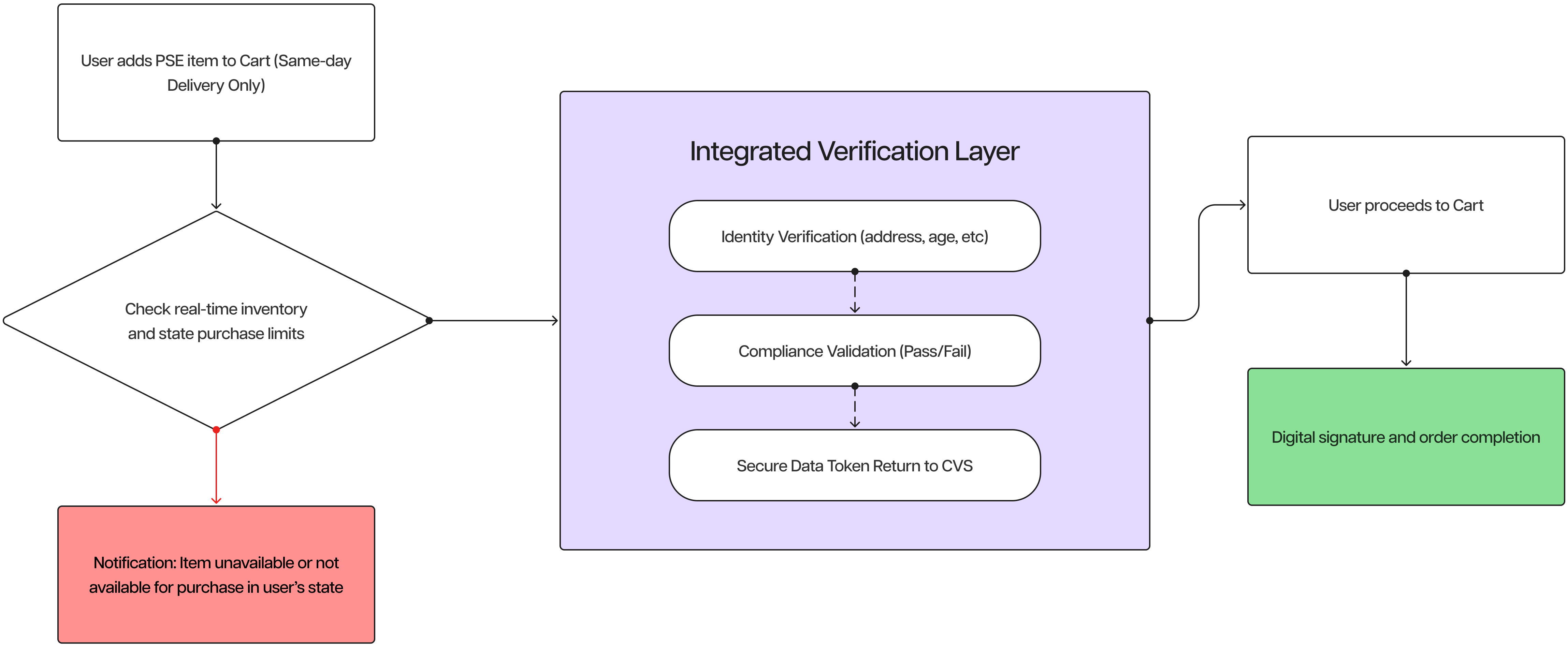 I began by auditing the existing "in-store only" purchase flow for regulated items to identify why users were abandoning the journey. The primary friction point wasn't just the legal requirement itself, but the "black box" nature of the verification process—users were hesitant to share sensitive data like SSNs or biometrics without clear context or trust indicators. My goal was to move beyond a binary "pass/fail" gate and design an informative, transparent bridge between the CVS e-commerce experience and the third-party verification layer.