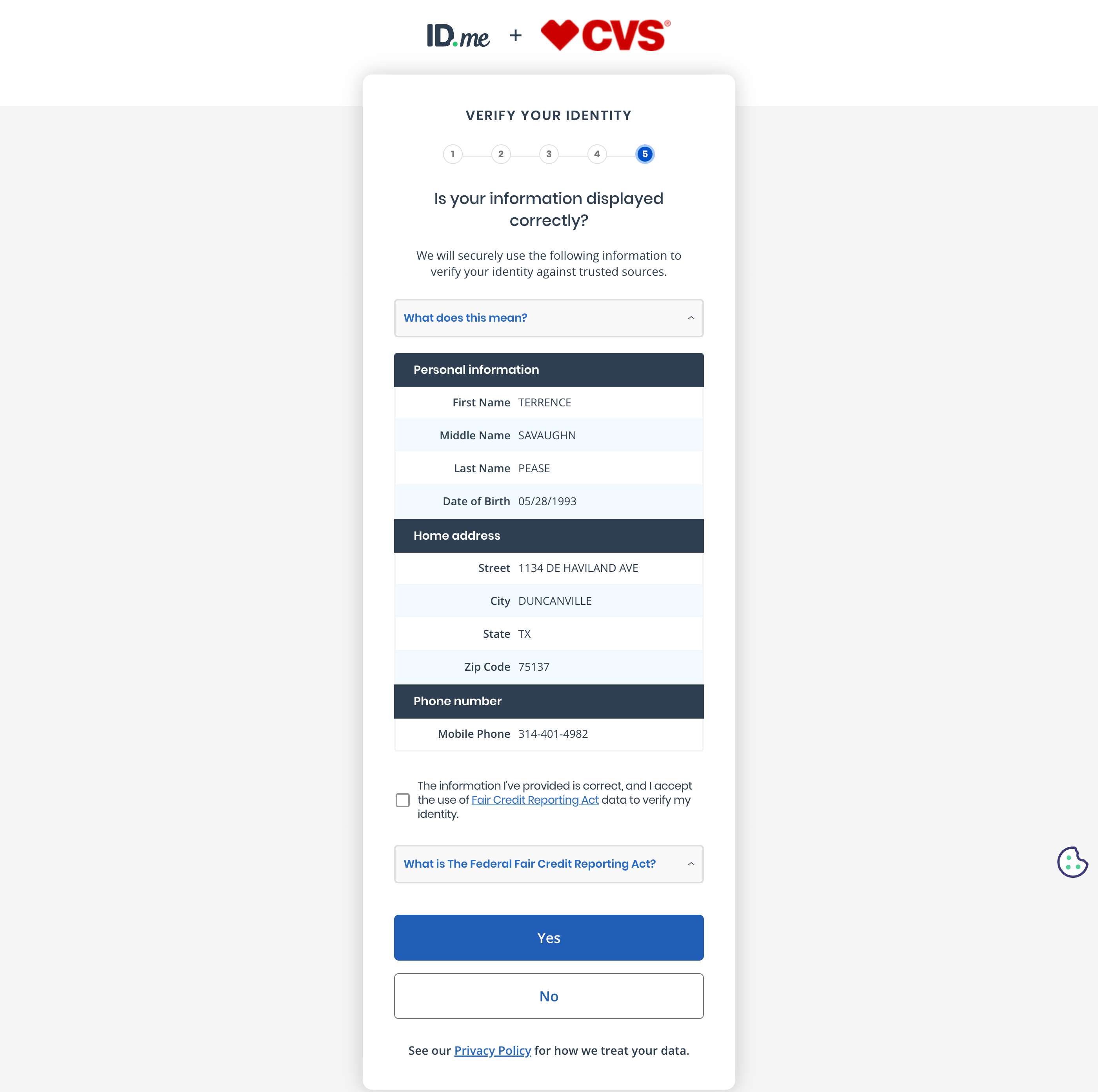 I conducted a competitive analysis of other high-stakes verification flows, specifically focusing on how federal and state agencies utilize ID.me for digital identity handoffs. I discovered that a major pain point in these journeys is the "context switch"—the moment a user is redirected to a third-party site and feels they have lost the security of the primary brand. To solve this, I researched mental models surrounding "Co-Branded Trust," leading me to design a persistent CVS-branded header and a clear progress tracker that remained visible even while the user was interacting with the ID.me verification layer.